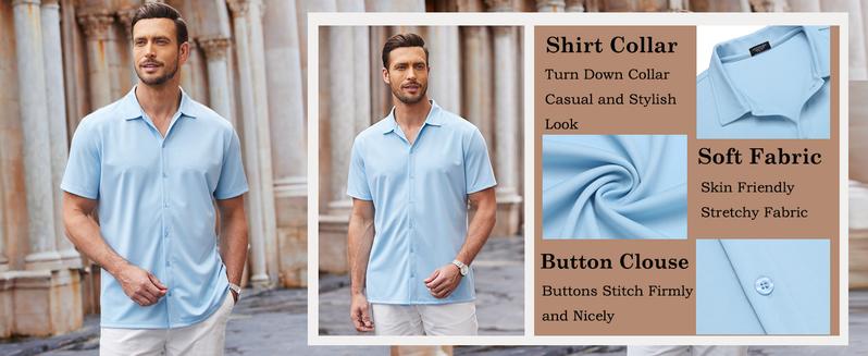 Upgrade your everyday look with the COOFANDY ImperialPress Short-Sleeve Shirt, crafted from a premium blend of 92% Polyester and 8% Spandex for unmatched softness, stretch, and all-day comfort.